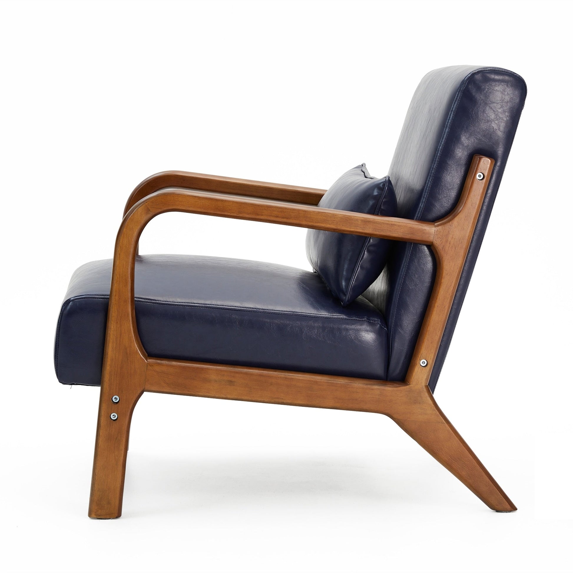 Glitzhome 30.75H Mid-Century Modern PU Leather Armchair Accent Chair with Pillow - 25.75W x 33.75D x 30.75H