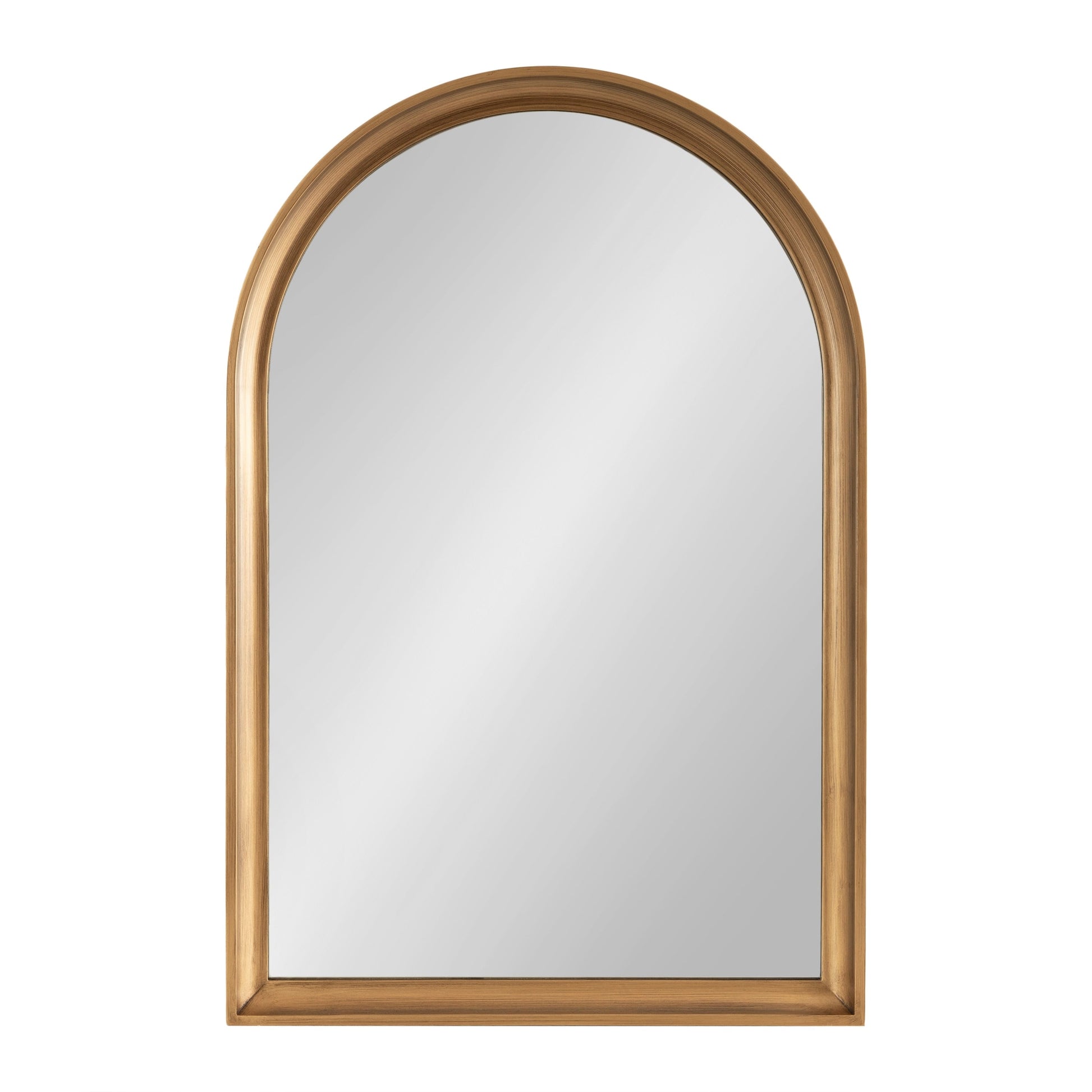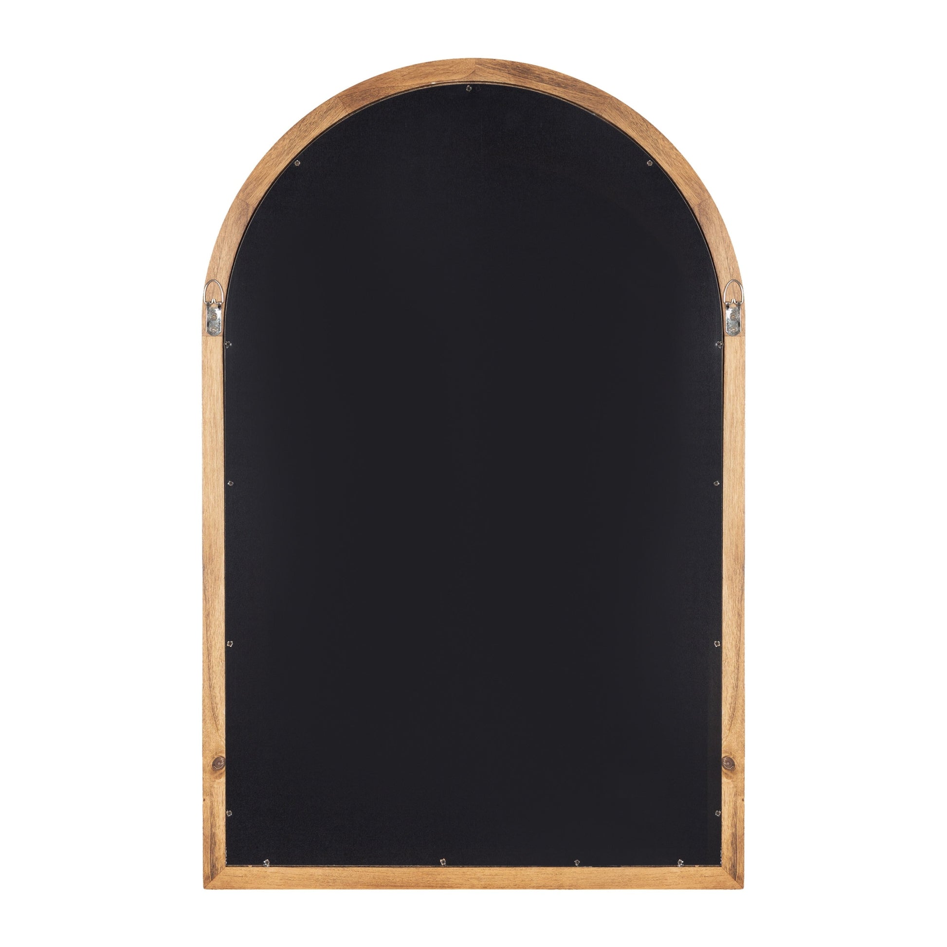 This mirror is perfect for unleashing your inner decorator and transforming your space with a modern transitional look. The Hatherleigh was designed with robust natural wood, providing high-quality durability, a lovely woodgrain, and a charming, rustic brown finish. The classic arch shape is perfect for introducing soft geometry to your space while maintaining a squared-off base for structure and uniformity. Its overall dimensions are 24 inches wide by 1.5 inches deep by 36 inches tall, creating a commanding statement piece that functions well in various spaces. Use the Hatherleigh mirror to bring vibrancy to your space, using the wide surface area to increase the spread of light and make your room appear brighter. It looks great all throughout your home or office, pairing well with your mantel, console table, sofa, bed, and much more. If you're looking to start renovating your bathroom with a relaxing vibe, the Hatherleigh works well as a tall bathroom mirror in a single or double vanity. Hang this mirror in a matter of minutes with the metal D-ring hangers that are attached to the sturdy back.