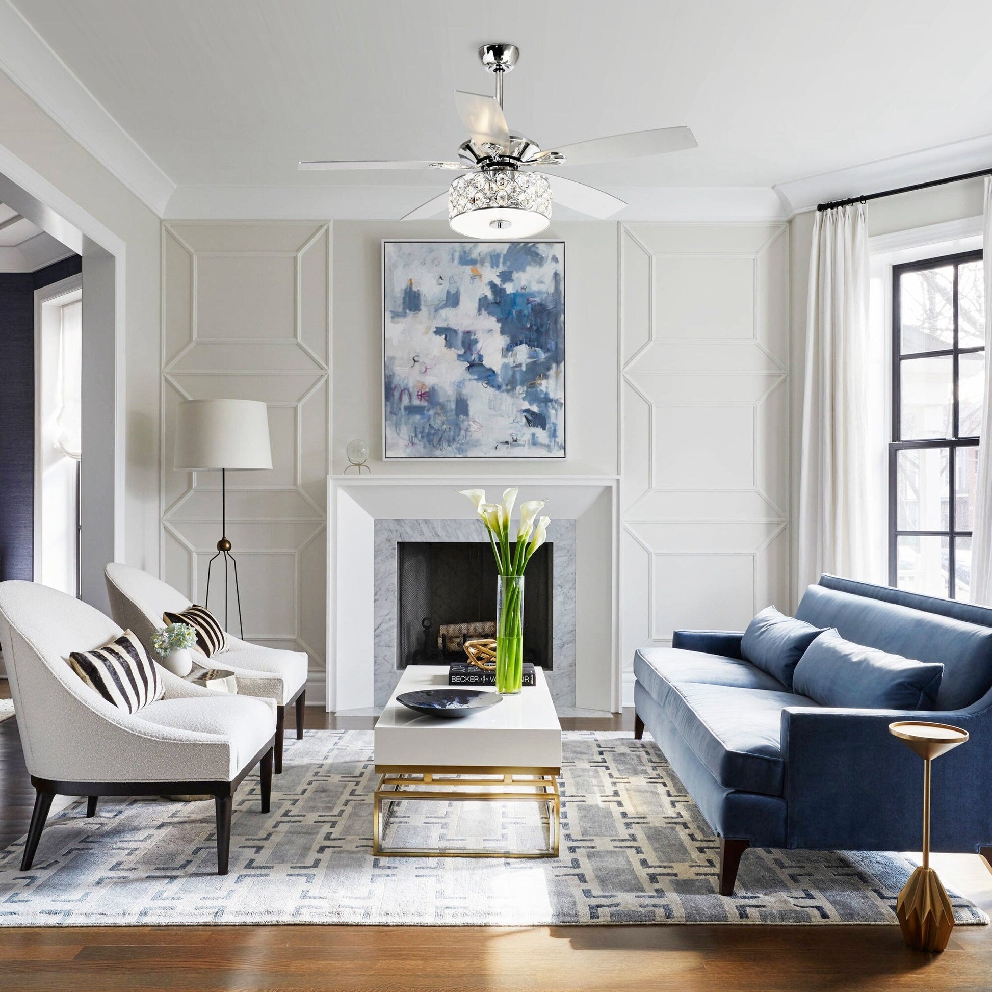 52 Modern 4-Light Chandelier Crystal Ceiling Fan with...