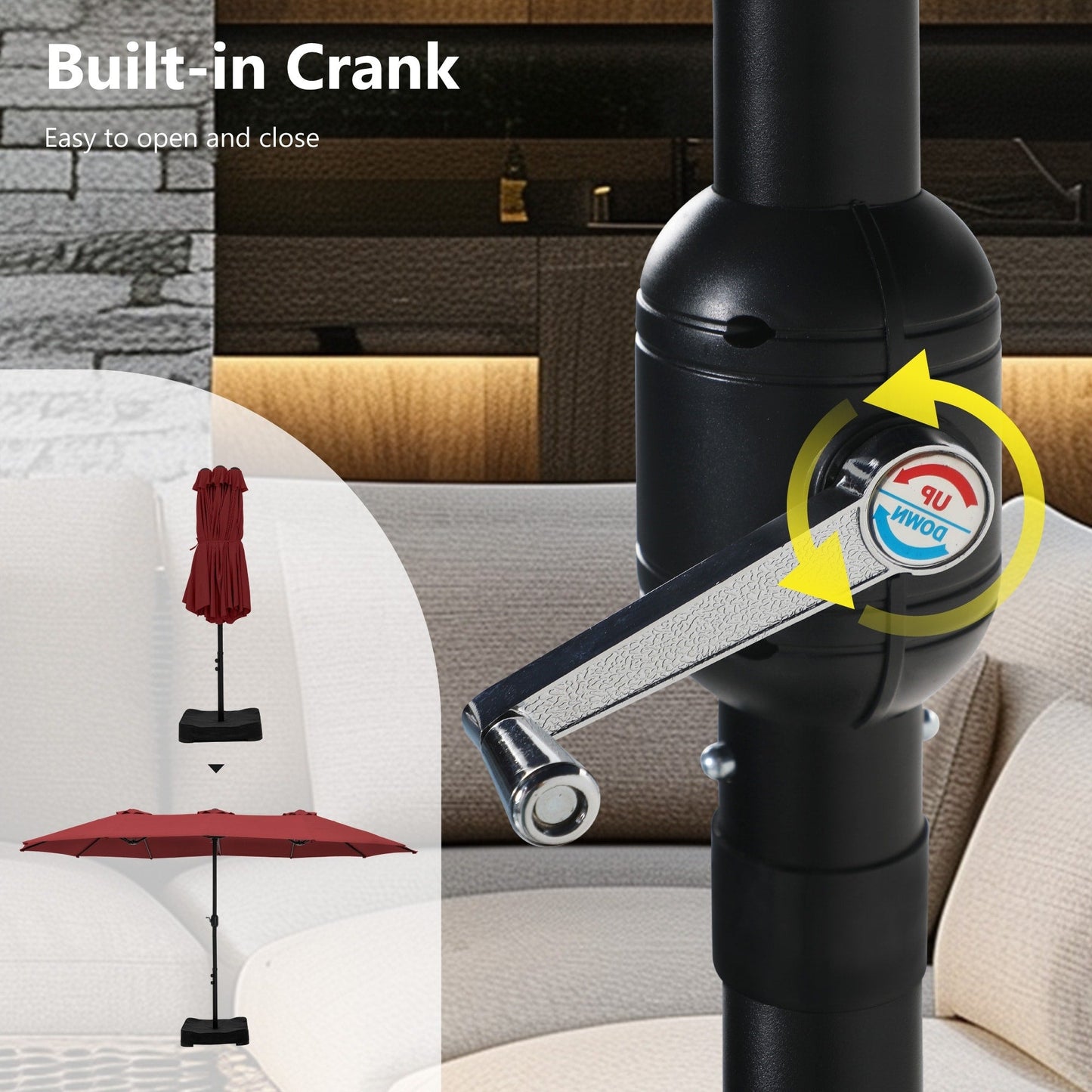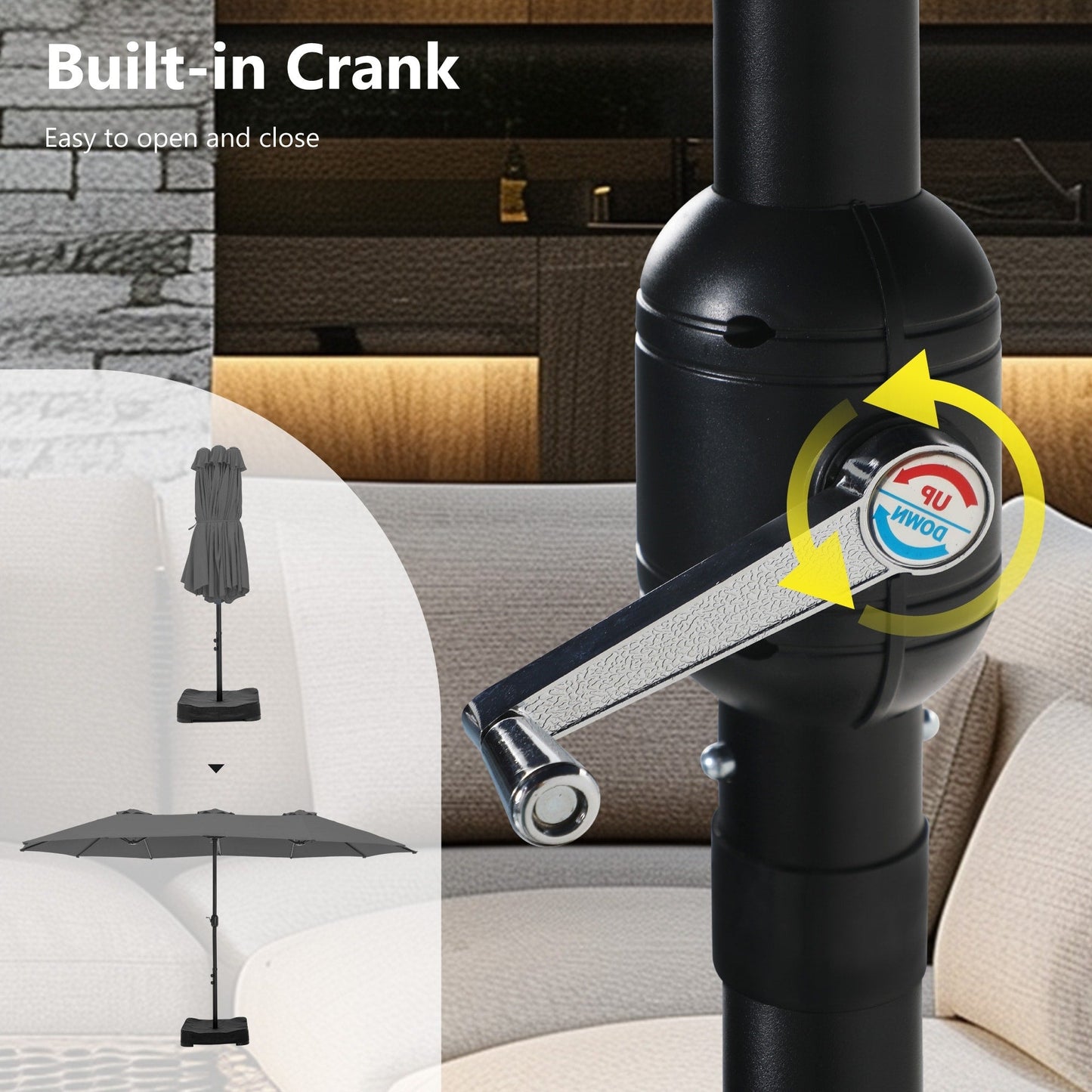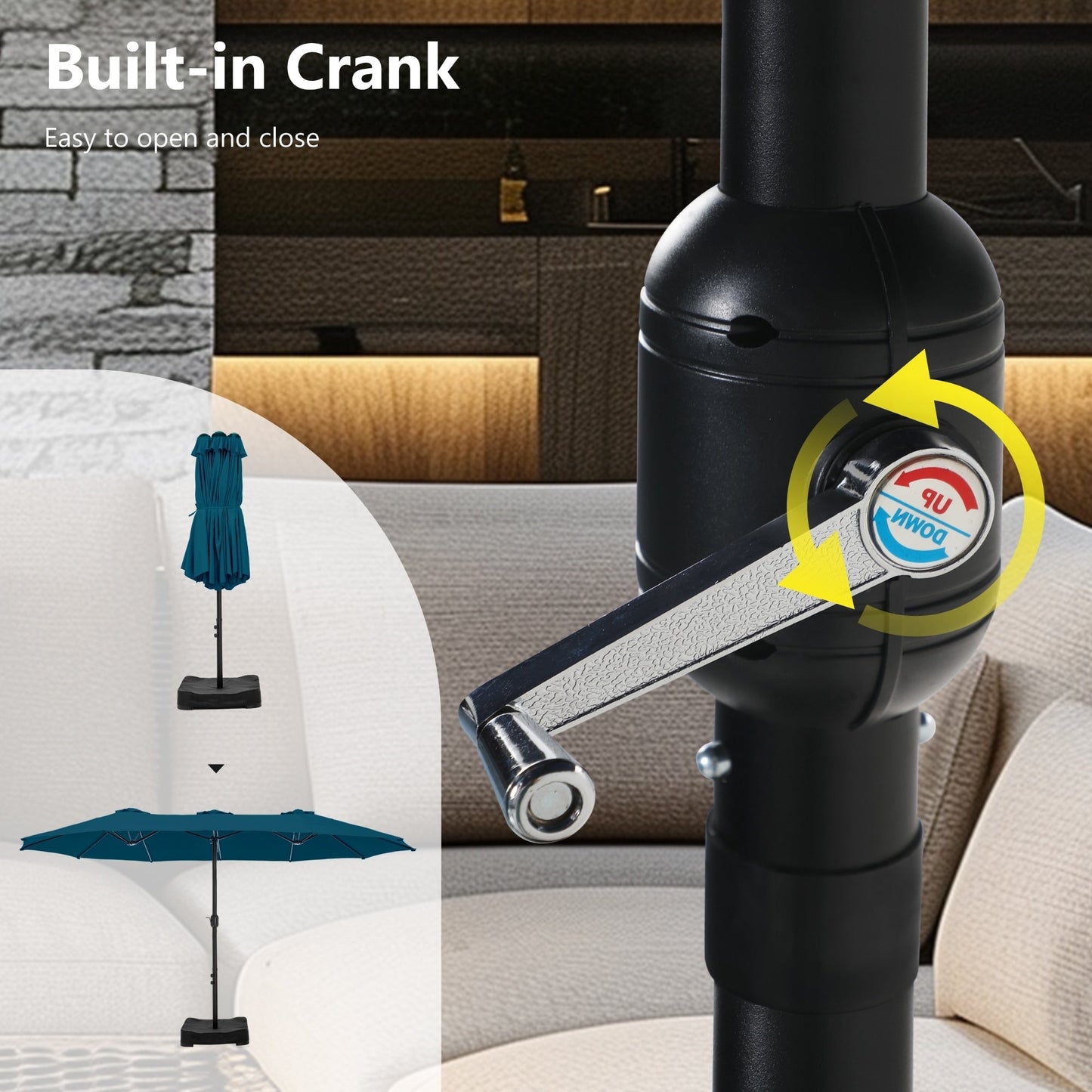 • Easy Operation: Classic crank design makes it easy to be set up in a few minutes. Please open the umbrella after it has been fixed to the base