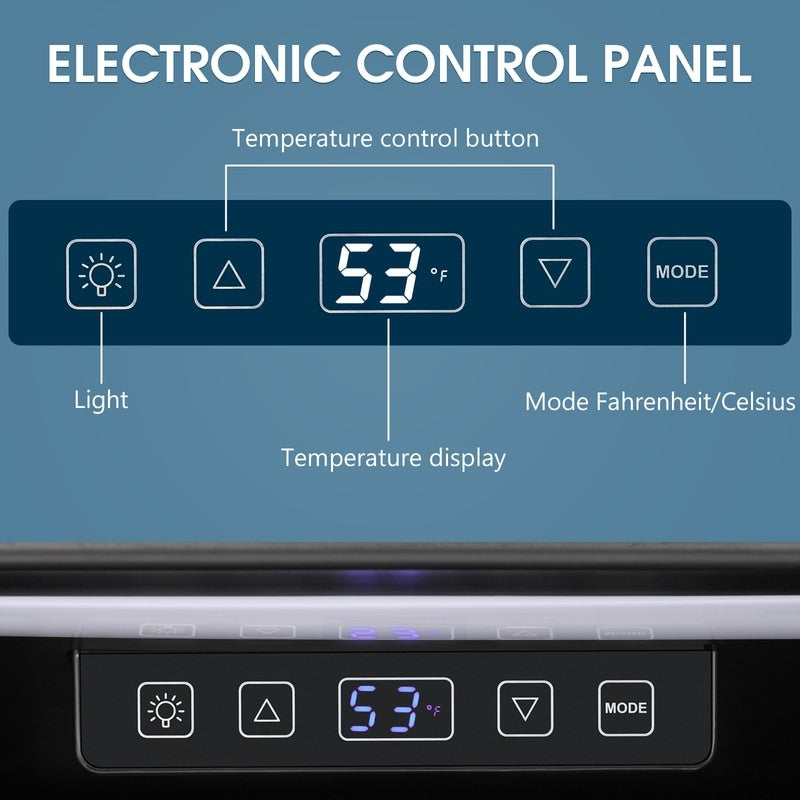• POWERFUL COOLING EFFECT: The temperature of the refrigerator is controled by an electronic touch control. This mini wine cooler has an operating temperature range of 40°F-61°F and is equipped with a rotary thermostat for self-adjustment (55°F is generally considered the optimal temperature). Heat is the number one enemy of wine and drinks. It allows you to store your wine and beverages in optimal conditions for long-term aging. This built-in beverage cooler will be a great addition to your kitchen, bar, office and restaurant!