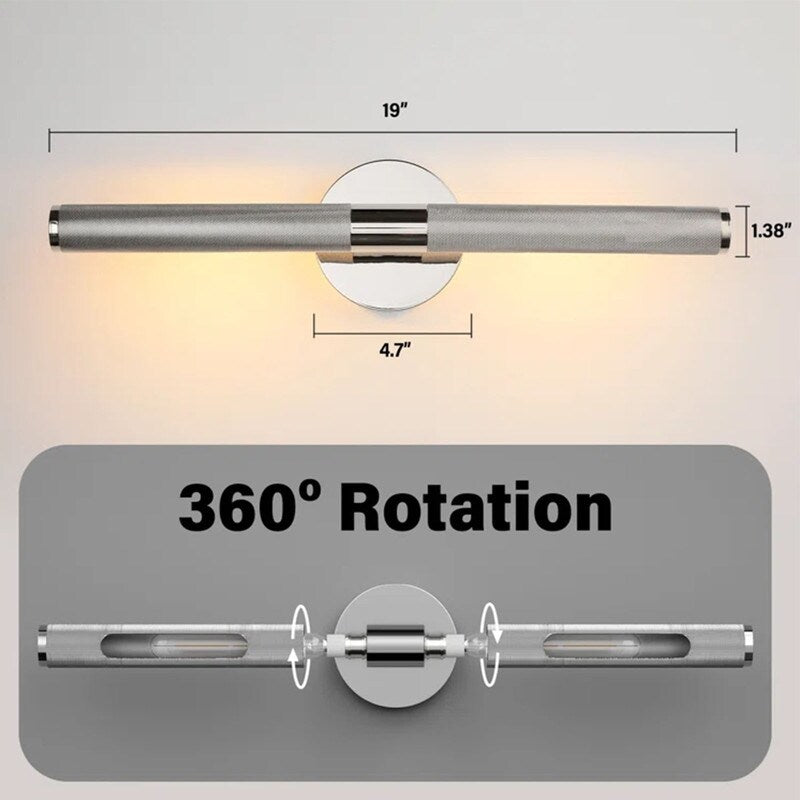 Multi-Purposes& Bulb Sockets: The vanity lights over mirror are suitable for the mirror, stairway, balcony, indoor aisle, office, etc, Modern LED wall lamps brighten your living instantly. Measuring 18.9 inches in length, this wall light is designed for easy installation. The disc base, with a diameter of 4.7 inches, provides stability and support. The package includes 2 E12 bulbs, compatible with a voltage range of 110V-240V.