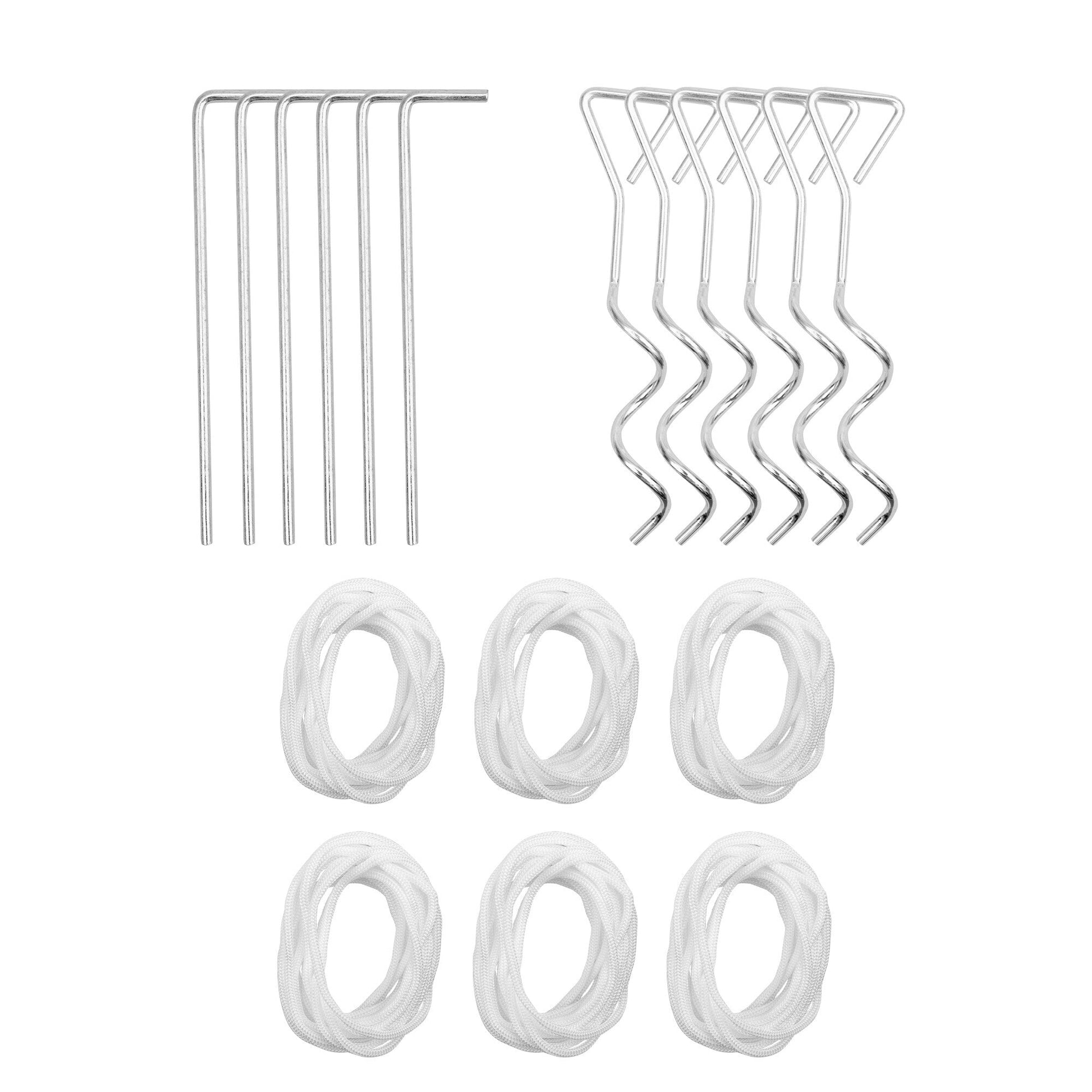 • Ropes and stakes to mount it to soft ground